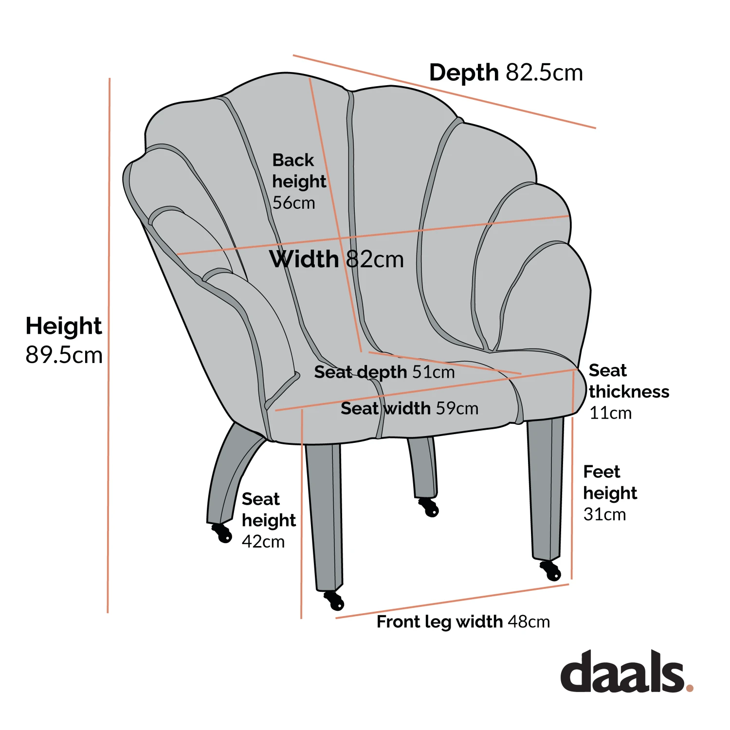 - Leg height: 31 cm