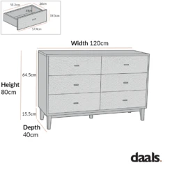 - The six drawers pull out on metal runners, providing ample storage space for clothes, bedding etc.