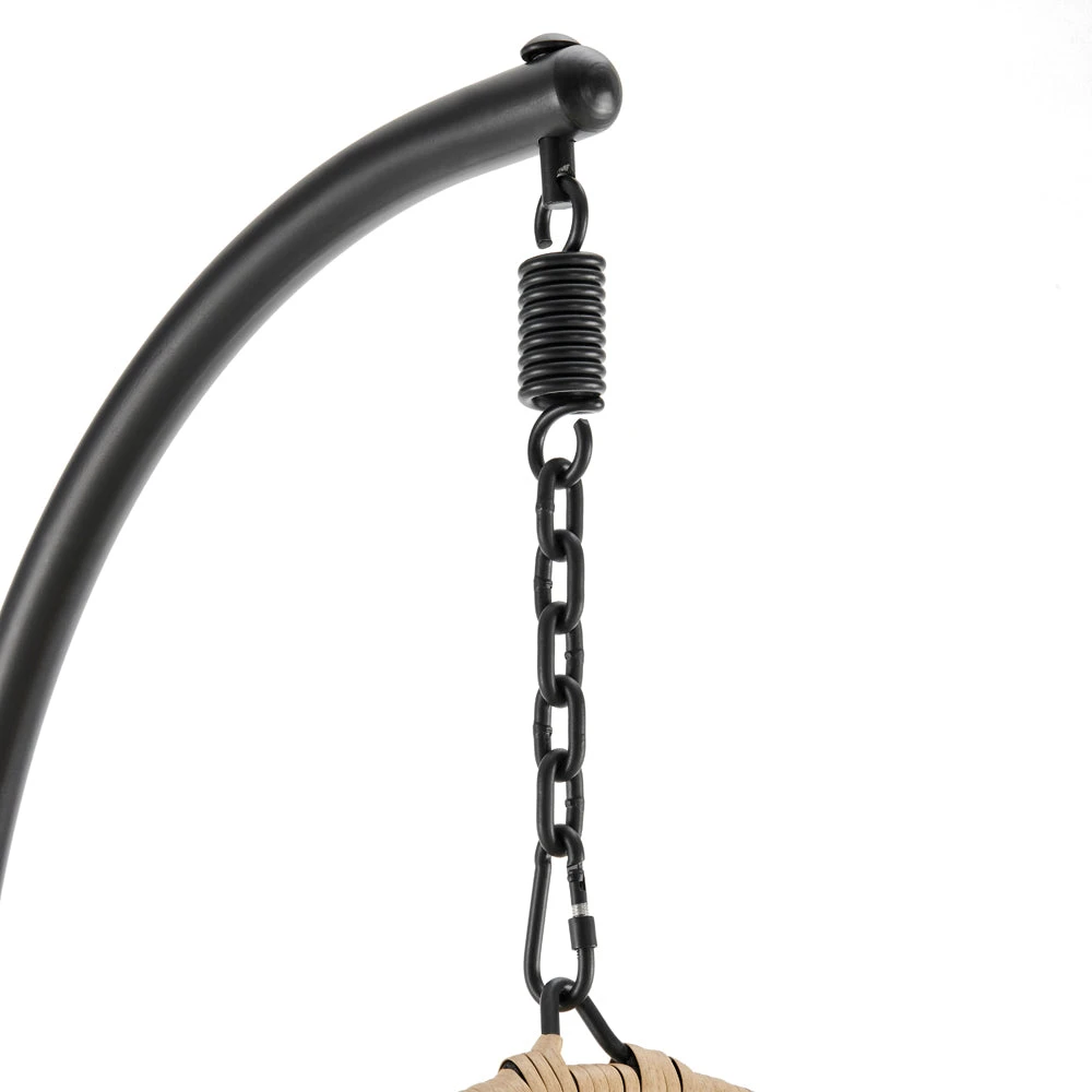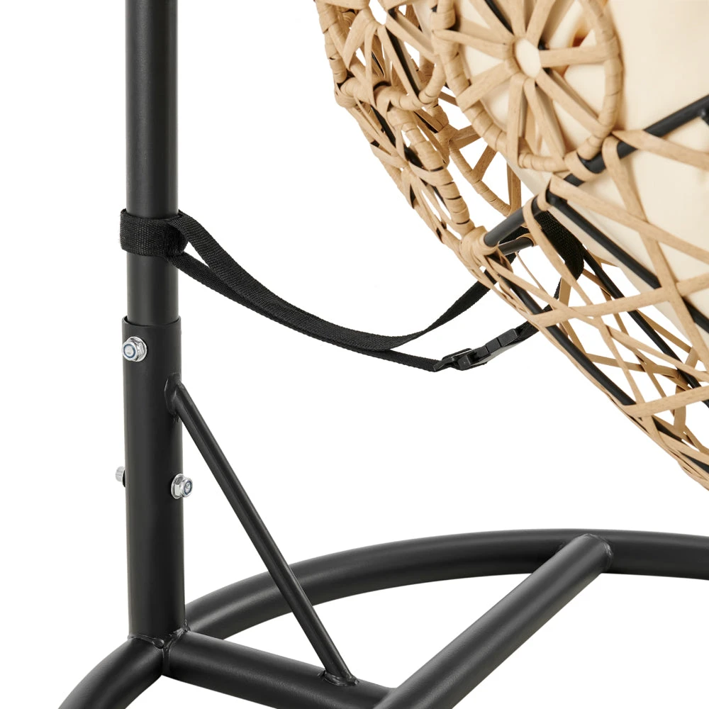- Our Daisy hanging chair is made with durable beige faux rattan hand woven in beautiful flower shaped patterns.