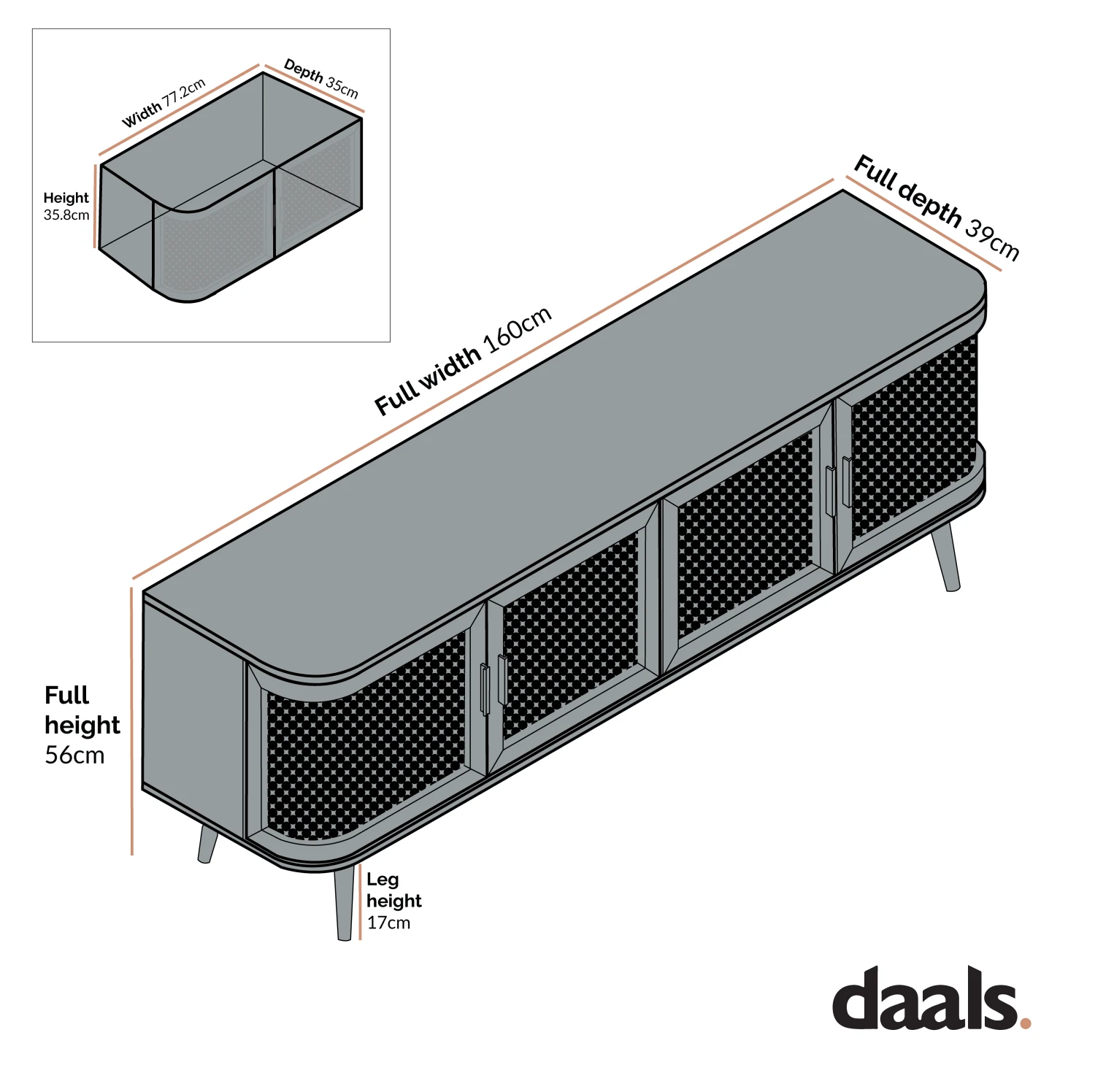 - Leg height: 17 cm